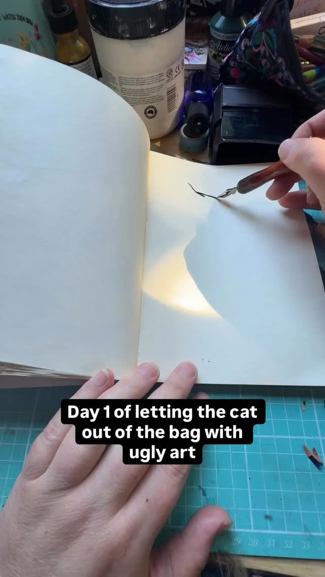 Scuffy has 56 pages of 200gsm cold pressed watercolour paper. It has been bound with waxed Brazilian cord in a Coptic stitch.